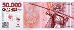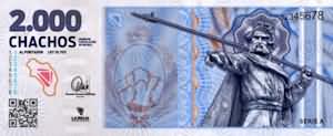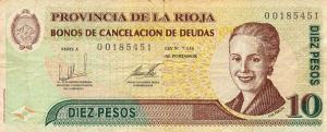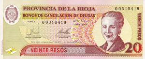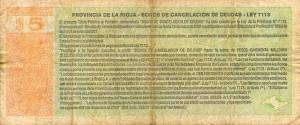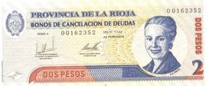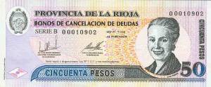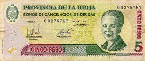 En 1986, durante el gobierno de Carlos Menem, se crearon por primera vez en el contexto de una crisis económica y una hiperinflación. Se emitieron billetes de 0,10, 0,50, 1, 5, 10, 50, 100, 10 000 y 50 000, y tenían una paridad fija con el austral. Todos los billetes tenían el rostro de Facundo Quiroga. Su emisión finalizó en 1989.